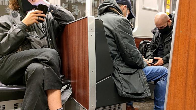 Foto: Männer mit Maske in einer U-Bahn, über dts Nachrichtenagentur