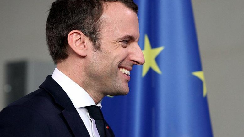 Foto: Emmanuel Macron vor EU-Fahne, über dts Nachrichtenagentur